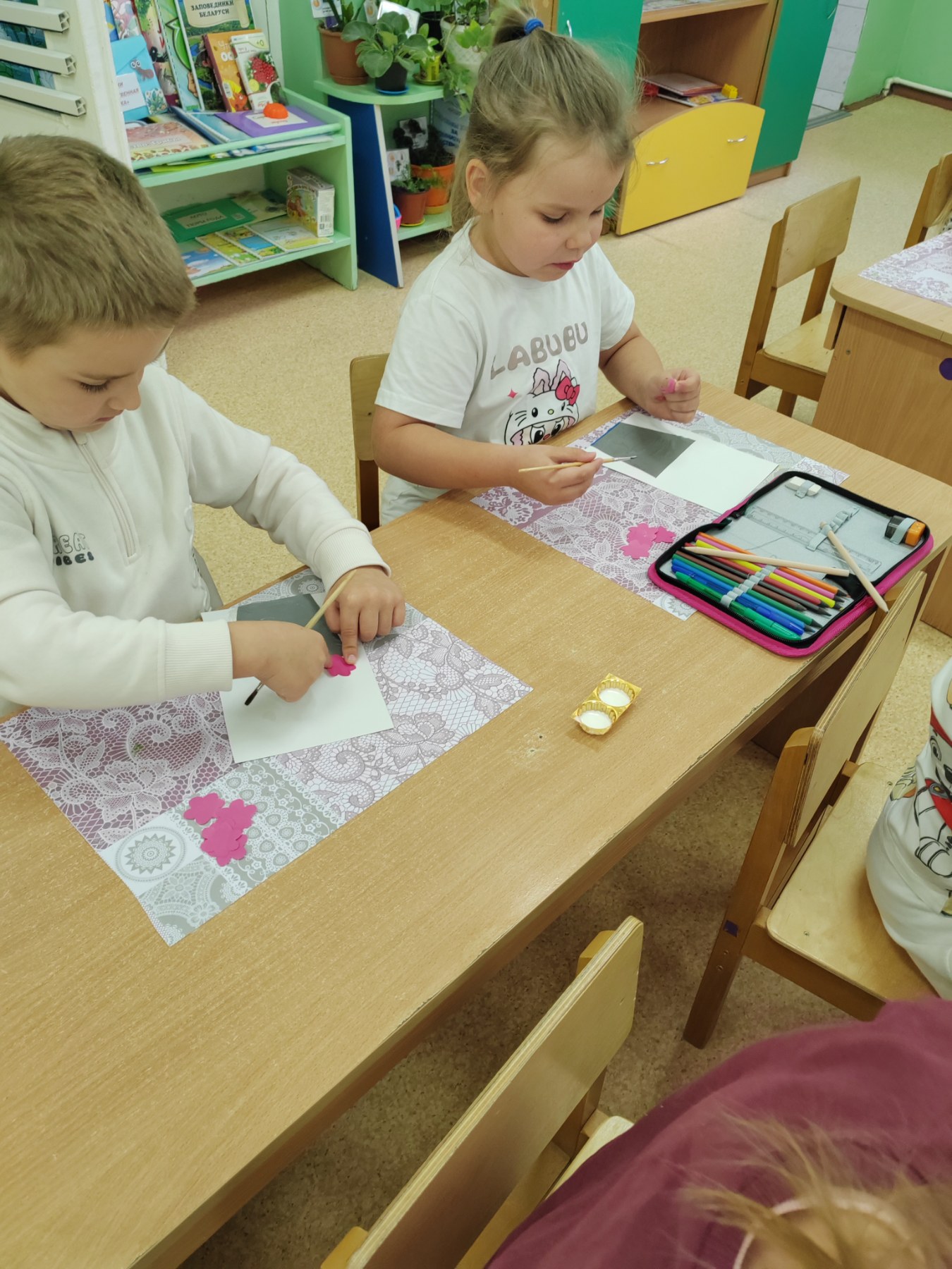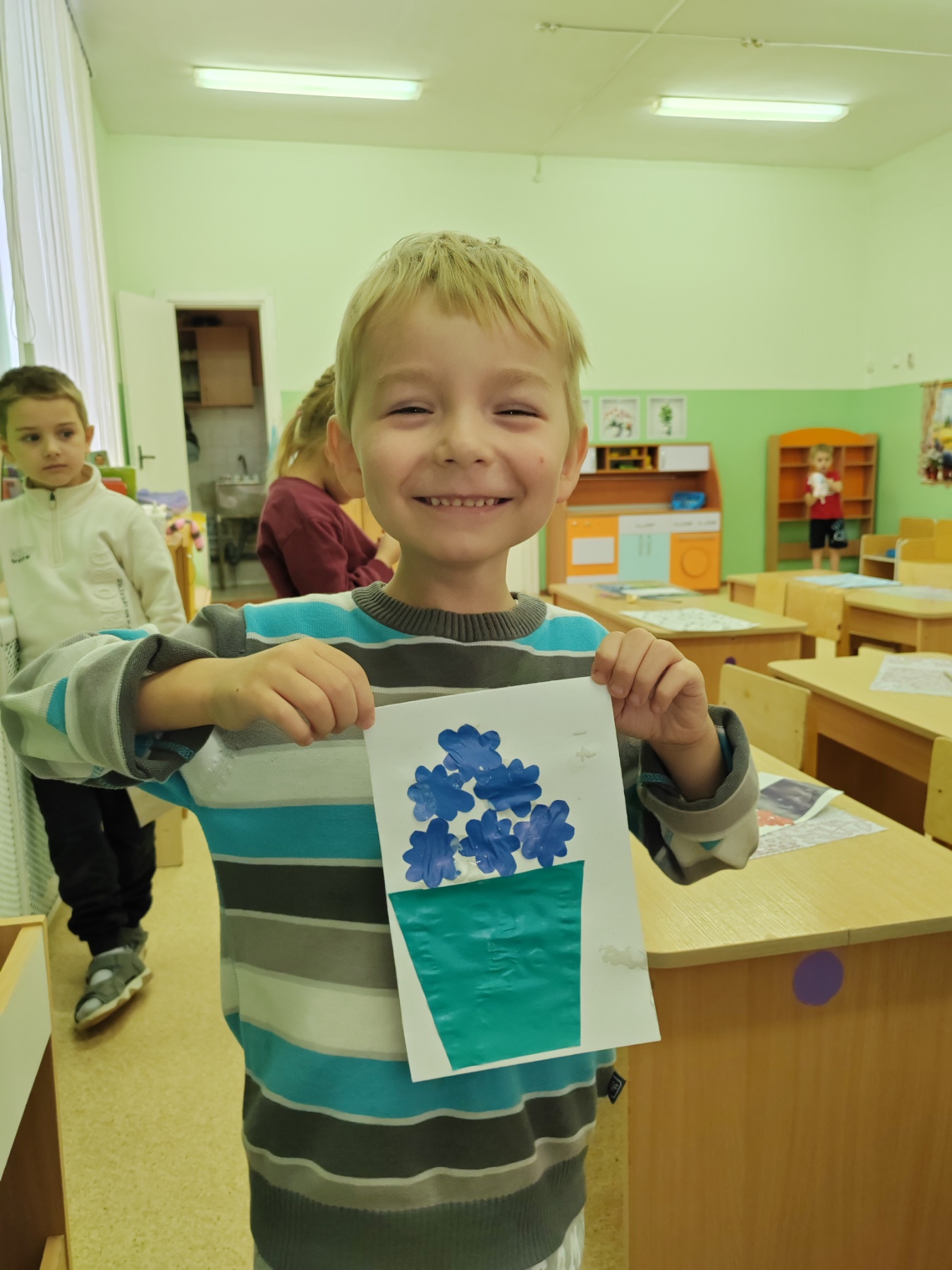 Старшая группа № 2 превратилась в настоящую мастерскую флористов! 🌿 Ребята создавали яркие аппликации — каждый свой уникальный цветок в горшочке. Смотрите, какая красота у нас получилась! 🎨
